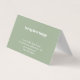 Add your custom text to this folded business card template. The modern stylish script is editable. This trendy sage or eucalyptus green and white card would be great for a coffee shop, cafe, or bistro. Add the name of your business and opening hours on the front. The inside is blank for your use. On the back you can add custom text and your address, website and phone and more.
