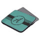 Laptop-Gehäuse mit blauem Hintergrund, schwarzen Streifen und einem benutzerdefinierten Monogramm