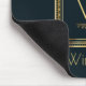 Monogramm und Name in Imitaten Gold - goldgelb gefärbtes minimalistisches Schriftart Set auf einem goldenen blüh und gerahmt in einem aufwändigen goldenen geometrischen Rahmen. Set auf schwarzer Perle - ein tiefschwarz, reich blau. Verwenden Sie die Vorlage, um mit dem Monogramm-Initial zu personalisieren.