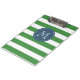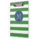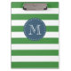 Custom Monogram Green und Navy Blue Bold Strips Klemmbrett