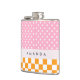 Custom Monogram Pink Orange Polka Dot Karo Flachmann