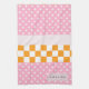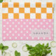 Custom Monogram Pink Orange Polka Dot Karo Geschirrtuch