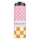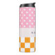 Custom Monogram Pink Orange Polka Dot Karo Thermosbecher