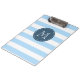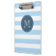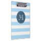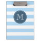 Custom Monogram Sky Blue and Navy Bold Stripes Klemmbrett