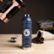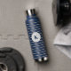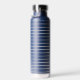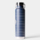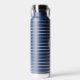 Diese isolierte Wasserflasche wird in Marineblau mit grauen Streifen und auch mit einer individuellen Monogramm-Buchstabenprobe gezeigt. Ändern Sie den Beispielbrief auf Ihre oder kaufen, wie es ist.