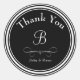 Monogram Danke Aufkleber für die Hochzeit-Party Gefälligkeiten, danke Ihnen Notizen, oder kleine Geschenke. Ändern Sie den Hintergrund mit Ihren Hochzeitsfarben oder verwenden Sie dieses elegante Schwarz-Weiß-Design. Personalisieren Sie Ihre Daten mit dem Namen der Neuvermählten.