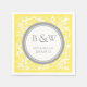 Die Servietten für Hochzeiten in modernem und fröhlichem, hellgelben, dunkelgrauem und weißem Chic und Vintagem, floralen Damast-Muster. Ändern Sie den Schriftart oder die Farbwahl, um Ihre eigenen Hochzeitsfarben anzupassen. Kontaktieren Sie uns für ein individuelles Farbmuster.