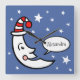 Eine Abbildung des Mondes in seiner Nachtkappe umgeben von Sternen in einem klaren Nachthimmel.