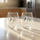 Custom 'Mr. & Mrs. Minimal Script Hochzeit Stemless Wein Glas. Personalisieren Sie mit Ihrem Familiennamen und Hochzeitsdatum unter "Mr. & Mrs.' in elegantem Schriftsatz. Macht ein perfektes Hochzeitsgeschenk oder hält Sake und Geschenk für Neuvermählte.
