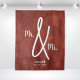Boho Mr. und Mr. Gay Hochzeit Hintergrund personalisiert mit ihrem Nachnamen oder Namen und dem Veranstaltungsdatum oder festes Jahr. Design mit Terrakotta-Hintergrund mit elegantem, aber modernem Stil für eine Hochzeitsfeier, einen Empfang oder für eine Zeremonie Wanddekoration.