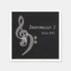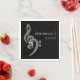 Ein klassisches Set mit schwarz-weißer Musik-Thematik aus Papierservietten für Ihr Party - weiße Ständer und Bassklemme vor einem texturierten schwarzen Hintergrund. Liebe. Passen Sie Ihren Konzertnamen und das Konzertdatum an.