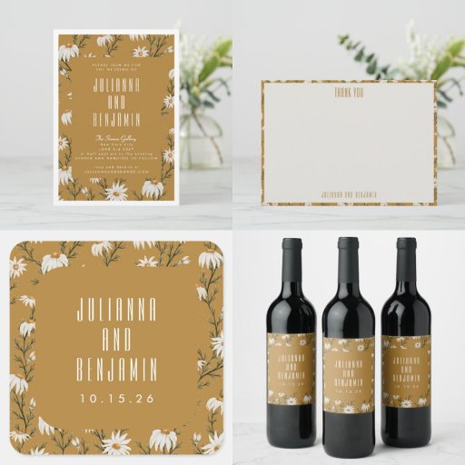 Mustard Daisy Floral Wedding SuiteDesignt von Opal Ellery