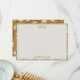 This wedding thank you card features a warm ivory center with the couple's names and "thank you" in golden lettering, bordered by a daisy and green stem pattern on a golden mustard background. A coordinating piece to send after a wildflower or boho fall wedding.