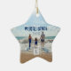 Mit Monogramm, individualisierbarer Myrtle Beach, Souvenirdekor von South Carolina mit flexiblen Jahreszeiten und einer sonnigen Szene am Meer, die eine glückliche Familie zeigt, die die schöne Grand Strand Surf und Sand genießt. Da der Skripttext auf diesem Ornament vollständig anpassbar ist, können Sie den Namen in jeden Strand Ihrer Wahl ändern, wie z.B. "Miami Beach", etc. Mit dem Zazzle Personalize-Button können Sie die Rechtschreibung ändern; Stil, Farbe und Größe des Schriftartes.