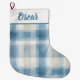 Custom Name Blue & White Plaid Christmas Stocking Großer Weihnachtsstrumpf