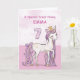 A sweet pink pony just like your great niece is prancing with the number seven! Gold looking details are woven in her mane and tail. Perfect card to wish your great niece her 7th birthday! Personalize with your great niece’s name.