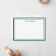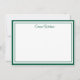 Custom name Note Card shown in white with a hunter green color double border trim.