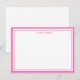 Custom name Note Card shown in white with a hot pink color double border trim.