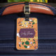 Brighten up your travels with this vibrant luggage tag featuring a cheerful yellow floral pattern on a warm orange background. The design showcases delicate blossoms and lush green leaves, evoking the feeling of a blooming garden. This eye-catching tag ensures your luggage stands out on the carousel, making it easy to spot. It's perfect for adding a touch of personality to your travel essentials and for anyone who loves floral motifs and a pop of color. The durable construction ensures it will withstand the rigors of travel, while the unique design adds a stylish flair to your bags.