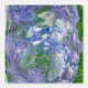 An acrylic abstract painting with the impression of green leaves and purple flowers.