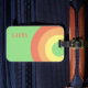 Add a fun, bright touch to your travel gear with this custom name luggage tag featuring a stylish green and peach rainbow target design. Personalize the front with your name and customize the back with contact details for safe, easy identification of your suitcase, backpack, gym bag, or carry-on.