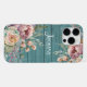 Custom Name Rustic Teal Wood Floral Personalized iPhone Hülle