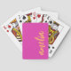 Playing cards featuring your name in an orange script font on a magenta hot pink background. Bold and colorful design.