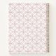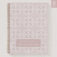 Elegant dusty rose notebook featuring a soft pink vector pattern repeated on a clean white background, complete with a customizable name and year on the cover. Perfect for journaling, school notes, planning, or gifting someone a beautifully personalized stationery piece.