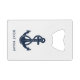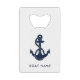 The nautical anchor Credit Card Bottle Opener design not only adds a timeless aesthetic but also complements any boating enthusiast's collection. Featuring your boat's name, and an anchor and rope, personalize to create a unique gear for your boat. Makes a great giveaway for everyone.