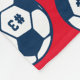 Personalisierter Fußball gemusterte Fleecedecke für Fußballspieler, die keine Tore auf dem Feld schießen, und für ihre Eltern, ihre Kinder zu unterstützen und bei kalten Spielen warm bleibe! Ein einzigartiges Teamgeschenk für Reiseturniere. Das Design enthält ein Muster von Fußballbällen, das mit der einheitlichen Spielerzahl abgestimmt ist. Enthält rote, marineblau und weiße Farben.