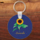 Custom Navy Blue Gold Script Watercolor Sonnenblum Schlüsselanhänger