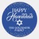 Custom Navy Blue White Holiday HAPPY HANUKKAH Runder Aufkleber