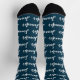 Die Womens Socken sind modern und mit dunkelblauem Hintergrund gestaltet. Name ist in weißem, trendy handgeschriebenem Skriptmuster. Passen Sie auf jede Farbe an, die zu Ihrer Mode passt. KLICKEN SIE AUF VORLAGENOPTION PERSONALISIEREN, UND GEBEN SIE DEN NAMEN EIN.