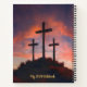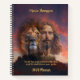 Personalisieren Sie Ihr 2024 Notebook mit Jesus und einem Löwen vor einem Sonnenuntergang mit drei Kreuzen. Genießen Sie die Anpassung von Volltext sowohl auf der Vorder- als auch auf der Rückseite, sodass Sie Ihren Namen an der Spitze, Ihre Lieblingsschrift, den Notizbuch-Namen und das Jahr angeben können. Von Infinity Digital Art für Sie entworfen.