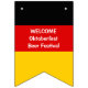 Custom OKTOBERFEST Deutsche Bierfahnen. Die geraden Fahnen zeigen patriotische Fahne DEUTSCHLANDS mit KUNSTBAR TEXT, die Sie personalisieren können, und die seltsamen Fahnen zeigen die drei Biersorten Cartoon und PROST! in kurvigem Text oben. Am unteren Ende des Textes steht GREAT DEUTSCHE BIER . Dieser Text ist auch KUNSTBAR, sodass Sie nach Belieben ändern können. Die Fahnen des Oktoberfestes sind ideal für private Partys, öffentliche Feiern, lokale, Staat- und nationale Bierfestivals, usw. - insbesondere das Oktoberfest. Matching-Artikel (inklusive bayerischer Version) sind in den EUROPE- und CHEERS & BEERS-Sammlungen von Berean Designs erhältlich.