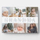 Mit dieser sechs Foto Collage-Plakette kreieren Sie ein süßes Geschenk für Oma. "GRANDMA" erscheint in der Mitte in schick-grauem Schriftsatz, mit der eigenen Nachricht und den Namen der Enkel überlagert.