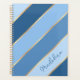 Spielplanerheft für Frauen oder Mädchen. Mit schönen zeitgenössischen pastellfarbenen, hellen, mittelblauen und dunkelblauen Streifen Muster. Mit Raum zum Anpassen mit Namen, Monogramm oder Initialen Ihrer Wahl. Verziertes, trendiges, modernes und skurriles Hipster Design für die elegante, künstlerische Mode oder künstlerische Mode-Diva, den angesagten Trendsetter oder den schlichten Retro gestreiften Kunstmotiv-Liebhaber.