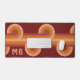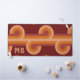 Moderne, hellorange, dunkelgelb und maronrot gefärbte geometrische Kreise und Linienmuster auf einem dunkelburgundischen roten Hintergrund. Mit der Option, um personalisieren oder anpassen mit einem Namen Monogramm, oder Initialen Ihrer Wahl. Verziertes, elegantes, stilvolles und eklektisches Design für die extravagante künstlerische Mode, die künstlerische Modediva, den beliebten angesagten Trendsetter, den Vintagen Retro-Kunststil und den abstrakten, geometrischen Motiv-Liebhaber.