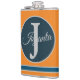 Custom orange greay blue Monogram Elegant Flachmann