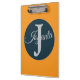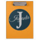 Custom orange greay blue Monogram Elegant Klemmbrett