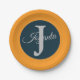 Custom orange greay blue Monogram Elegant Pappteller