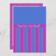 Eine farbenfrohe All-purpose Party Einladung für Sie zu personalisieren, mit einem Mix'n'match Muster aus Polka Dots and Stripes in Magenta, Brilliant Blue, Türkis und Pink. Teil der Posh & Painterly 'Magenta Magic' Reihe.