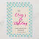 Custom Pastel Blue Checkered Birthday Party Einladung