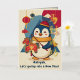 This playful design shows a cute penguin holding a stylized horse-shaped lantern, celebrating the Year of the Horse. Perfect for adding a vibrant, joyful touch to your Lunar New Year gifts and everyday items. The gold foil seal on the front of the card reads translates to "Instant success."