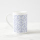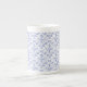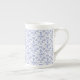 Eine dekorative Knochen-China-Tasse, mit einem traditionellen ogee Muster von Blue Periwinkle Blume Konturen auf einem weißen Hintergrund, die Sie ändern können, wenn Sie möchten. Als Teil der Posh und Painterly 'Periwinkle Patch' Kollektion kann dieses Muster leicht an jede Tasse angepasst werden.