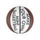 Maßgeschneiderte Druckvorlage personalisiert 6" MINI BASKETBALL Blank - Durchmesser 6" Gewicht: 0,5 kg Entwerfen, erschaffen, eigene machen. Hochwertiger, kristallklarer Vollfarbendruck auf den beiden weißen Paneelen - ohne Risse, Falten oder Schälen. Der Ball ist vorsichtig mit der Hand geheftet. Nachricht: das hochglänzende synthetische Leder kann Basketball etwas rutschiger machen als sonst. EBENFALLS VOLLE GRÖSSE ERHÄLTLICH! Bestens für Memento des Spiels für einen Trainer oder Teamspieler, und großartige Weihnachts- oder Geburtstagsgeschenke für Basketballfans.