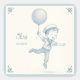 Cute announcement sticker featuring a pencil drawing of a little boy in a sailor suit floating under a balloon in the style of Delft ceramic tiles. The text is fully personalizable. Perfect as a birth announcement.