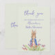 Personalisieren Sie diesen Peter das Kaninchen Design und fügen Sie einen Namen und Anlass. "Danke, dass du mit uns gefeiert hast (Name hinzufügen) Babydusche" Text
