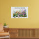 Das Design kann personalisiert werden, indem man einen Namen hinzufügt, es zu einem nachdenklichen und einzigartigen Geschenk macht oder bewahrt, das sich wirklich besonders anfühlt. Peter das Kaninchen in seiner blauen Jacke mit farbigen Ballons in seinem Blumengarten mit einem weißen Schlammzaun
