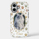 Celebrate your favorite feline with this Custom Photo and Name Pet Memorial Phone Case. This design features a charming pattern of earth-toned paw prints, delicate hearts, and botanical accents on a clean white background. Centered in an elegant gold-rimmed oval, you can feature a high-quality photo of your own cat, with their name beautifully scripted in gold-colored calligraphy below. It is the perfect blend of minimalist style and personal sentiment, making it a thoughtful gift for any cat owner or a beautiful way to keep your best friend with you always.